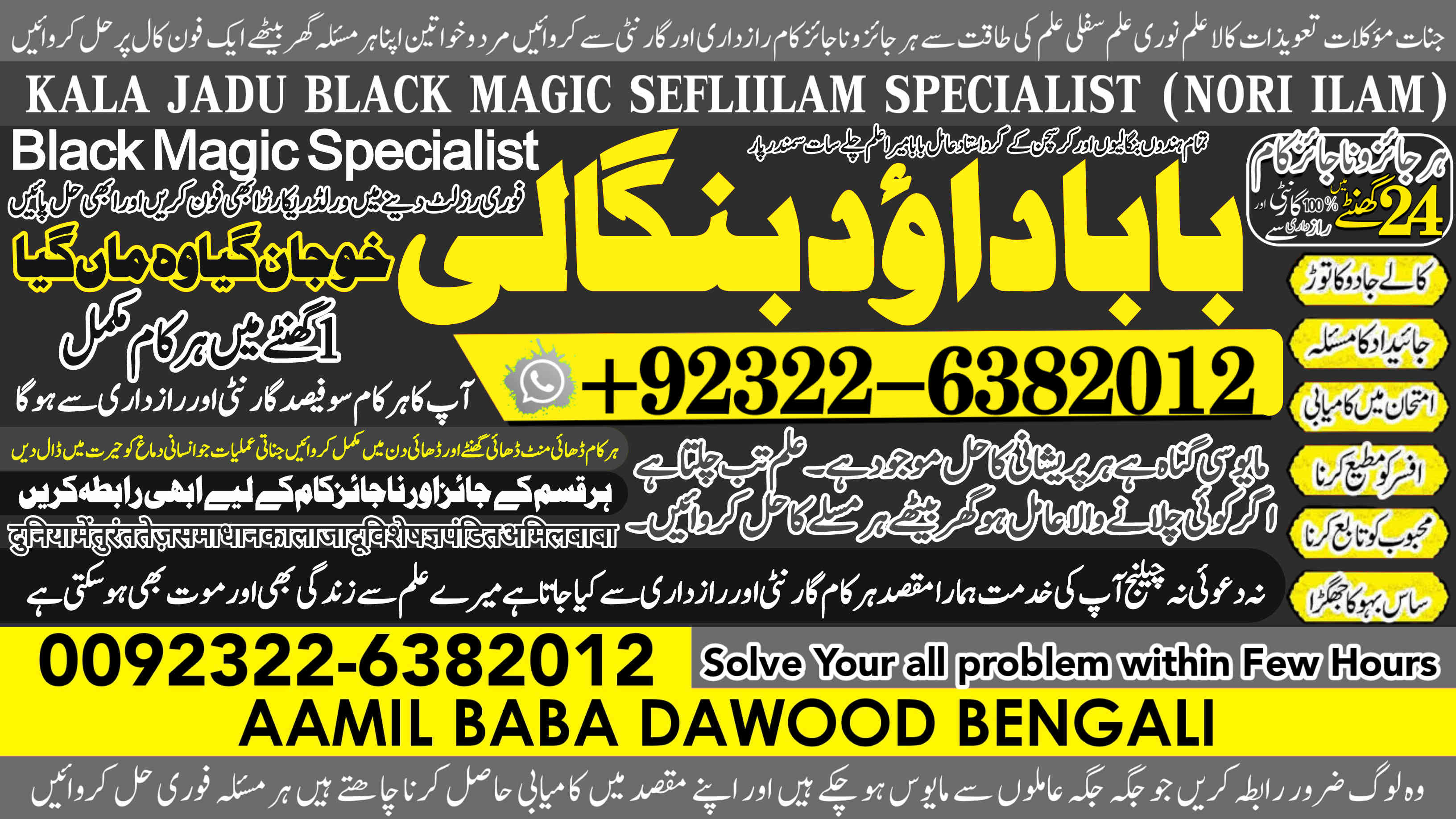 Amil Baba Dawood Bangali { PAK: 0322-6382012 ---- UAN: 0092-322-6382012} is a renowned spiritual healer and master of ancient occult sciences, specializing in Black Magic, Sephi Ilam, Nori Ilam, and Voodoo Spells. With decades of experience in the mystical arts, he has gained a reputation as a powerful and trusted guide for those seeking solutions to life's most challenging problems.