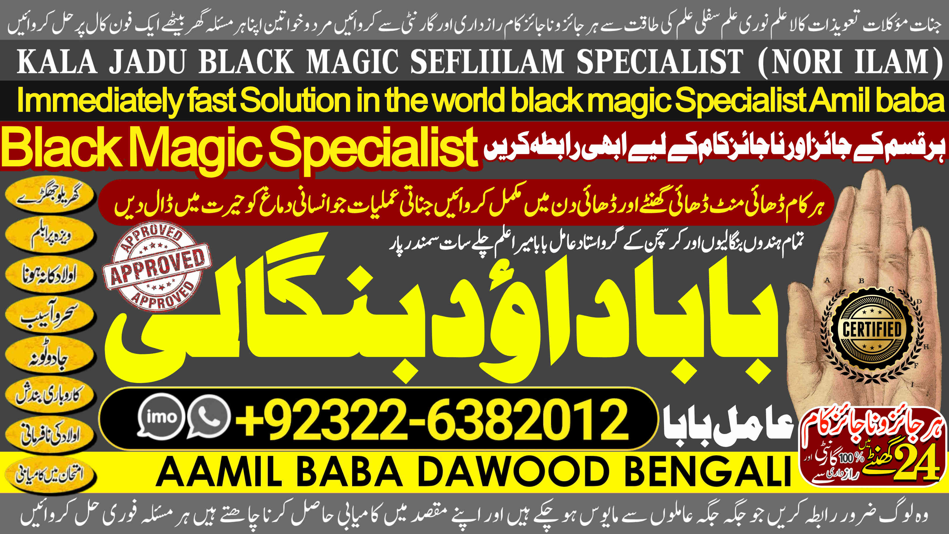 Amil Baba Dawood Bangali { PAK: 0322-6382012 ---- UAN: 0092-322-6382012} is a renowned spiritual healer and master of ancient occult sciences, specializing in Black Magic, Sephi Ilam, Nori Ilam, and Voodoo Spells. With decades of experience in the mystical arts, he has gained a reputation as a powerful and trusted guide for those seeking solutions to life's most challenging problems.