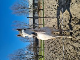 Lieve Ierse Hunter, erg braaf en rustig. Loopt zo de trailer op, is lief bij de hoefsmid/dierenarts, en is altijd mee geweest op slipjachten waardoor hij zowel in groepsverband als alleen, erg mak is. Zowel in de bak als buiten draait hij zijn hoofd nergens voor om. Is lief tegen andere paarden. Kan goed springen, dit vind hij ook erg leuk. Hij doet niemand kwaad, hij kan wat éénkennig zijn maar laat je vanzelf toe en is dan een schat van een paard. Hij heeft een rustig karakter en maakt zich nooit druk. Springen en buitenrijden vind hij heerlijk. Dressuurmatig is hij wat llastiger Hij vind het erg moeilijk, maar stapje bij stapje komt hij steeds verder. Als je een " echte dressuur amazone bent" , met plannen voor wedstrijden bvb, dan past hij niet bij je. Lekker met hem lessen, oefenen en kleine stapjes vooruit; dat past wel. Hij doet in elk geval ontzettend zijn best voor je. En zal altijd willen werken. Hij is 1.73, vrij groot en behoorlijk gespierd. Hij kent alle gangen goed, en is erg veelzijdig.