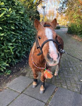Helaas verkopen wij onze lieve shetlander ruin (rond de 1 meter groot & Shetlander x Welsh) van 10 jaar. Oscar is een hele slimme, leergierige shetlander. Hij luistert goed naar je stem en kan daarom ook veel trucjes, zoals flemen, voetje geven en optillen, rondje draaien, over eigen voeten stappen, kusje geven en liggen. Hij is vroeger ook bereden, maar dat hebben we al een lange tijd niet meer gedaan. Hij vindt het leuk om te longeren, springen, wandelen en hij vindt het fijn om verzorgd te worden. Oscar houdt natuurlijk ook van eten zoals hooi, brokjes, snoepjes, gras enz. (Oscar is bijna een alleseter ;)) oscar is een slimme, ondeugende maar vooral hele lieve shetlander. Doordat hij wat ondeugend is, is het wel handig dat zijn nieuwe baasje wel stevig is zijn/haar schoenen staat en wat ervaring heeft. Oscar is een geweldige shetlander en daarom willen we ook dat hij naar een gouden plekje gaat waar hij met andere soort genoten kan staan. Kunt u Oscar een fijn nieuw thuis geven? Stuur dan een berichtje! (De prijs is natuurlijk in overleg.)