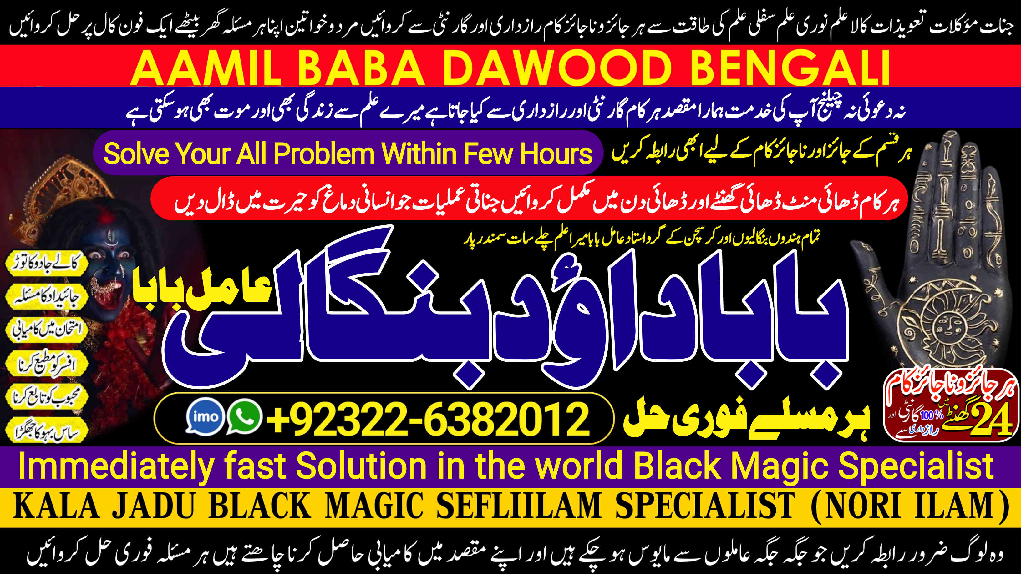 Amil Baba Dawood Bangali { PAK: 0322-6382012 ---- UAN: 0092-322-6382012} is a renowned spiritual healer and master of ancient occult sciences, specializing in Black Magic, Sephi Ilam, Nori Ilam, and Voodoo Spells. With decades of experience in the mystical arts, he has gained a reputation as a powerful and trusted guide for those seeking solutions to life's most challenging problems.