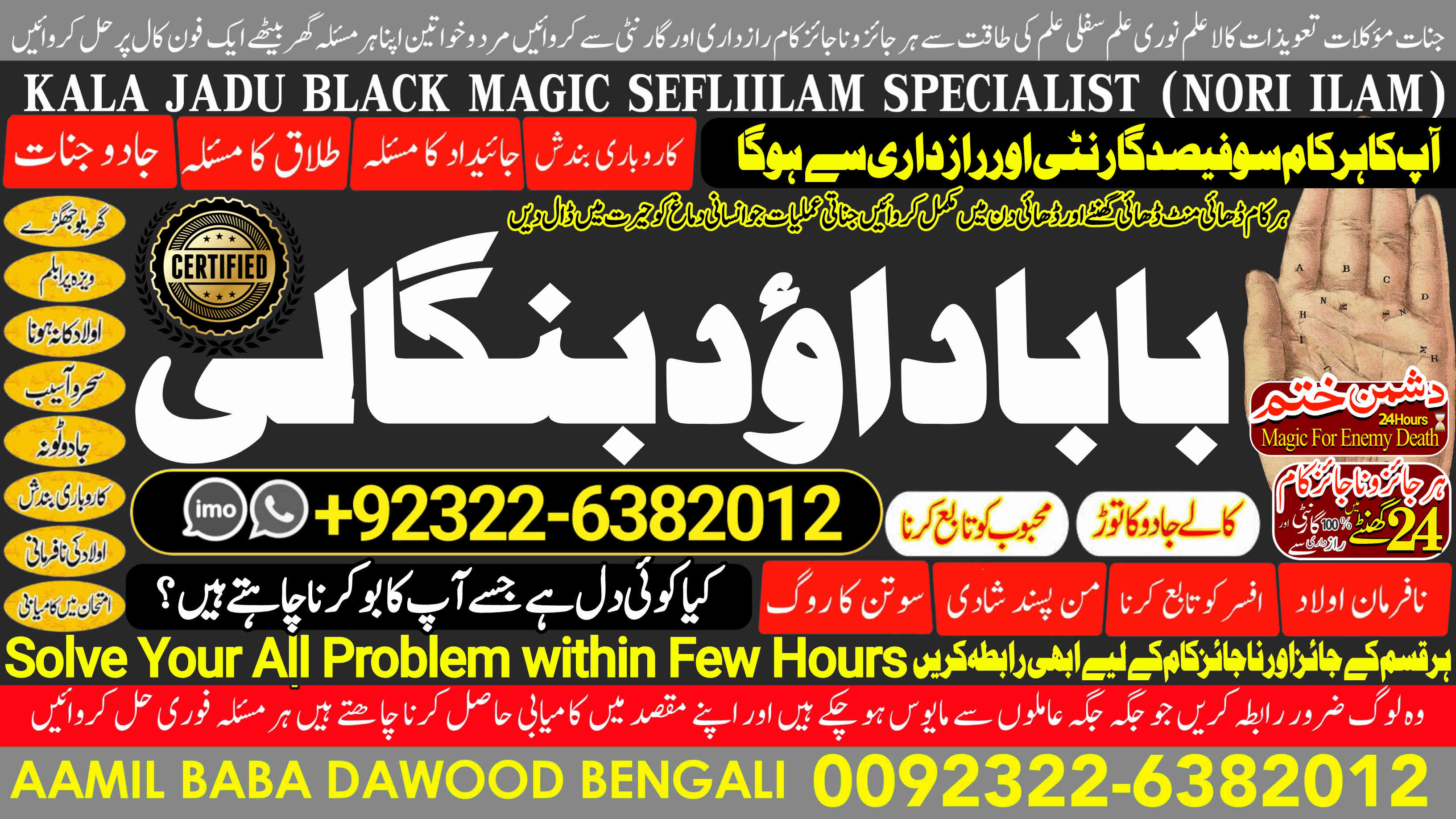 Amil Baba Dawood Bangali { PAK: 0322-6382012 ---- UAN: 0092-322-6382012} is a renowned spiritual healer and master of ancient occult sciences, specializing in Black Magic, Sephi Ilam, Nori Ilam, and Voodoo Spells. With decades of experience in the mystical arts, he has gained a reputation as a powerful and trusted guide for those seeking solutions to life's most challenging problems.