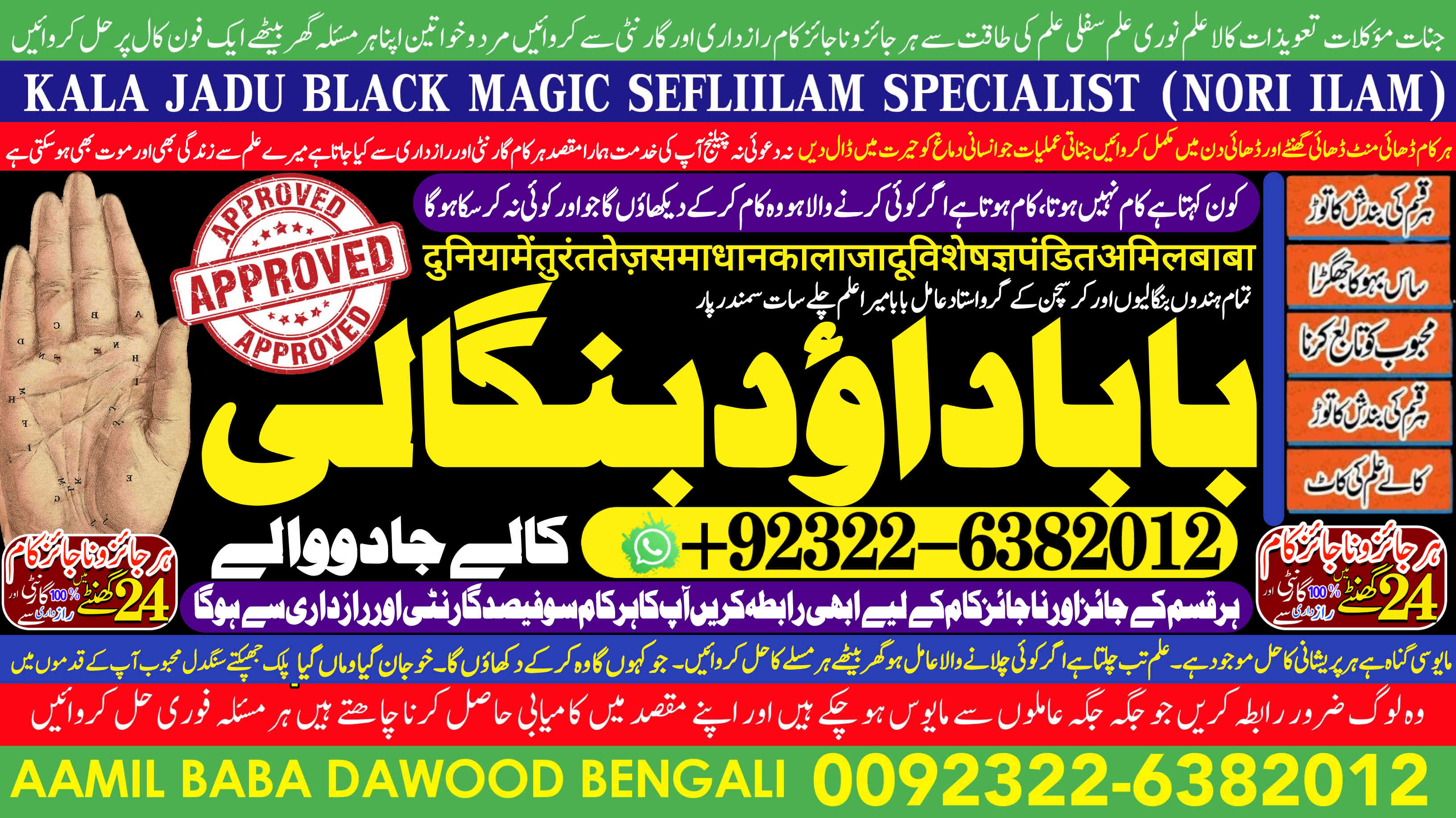 Amil Baba Dawood Bangali { PAK: 0322-6382012 ---- UAN: 0092-322-6382012} is a renowned spiritual healer and master of ancient occult sciences, specializing in Black Magic, Sephi Ilam, Nori Ilam, and Voodoo Spells. With decades of experience in the mystical arts, he has gained a reputation as a powerful and trusted guide for those seeking solutions to life's most challenging problems.