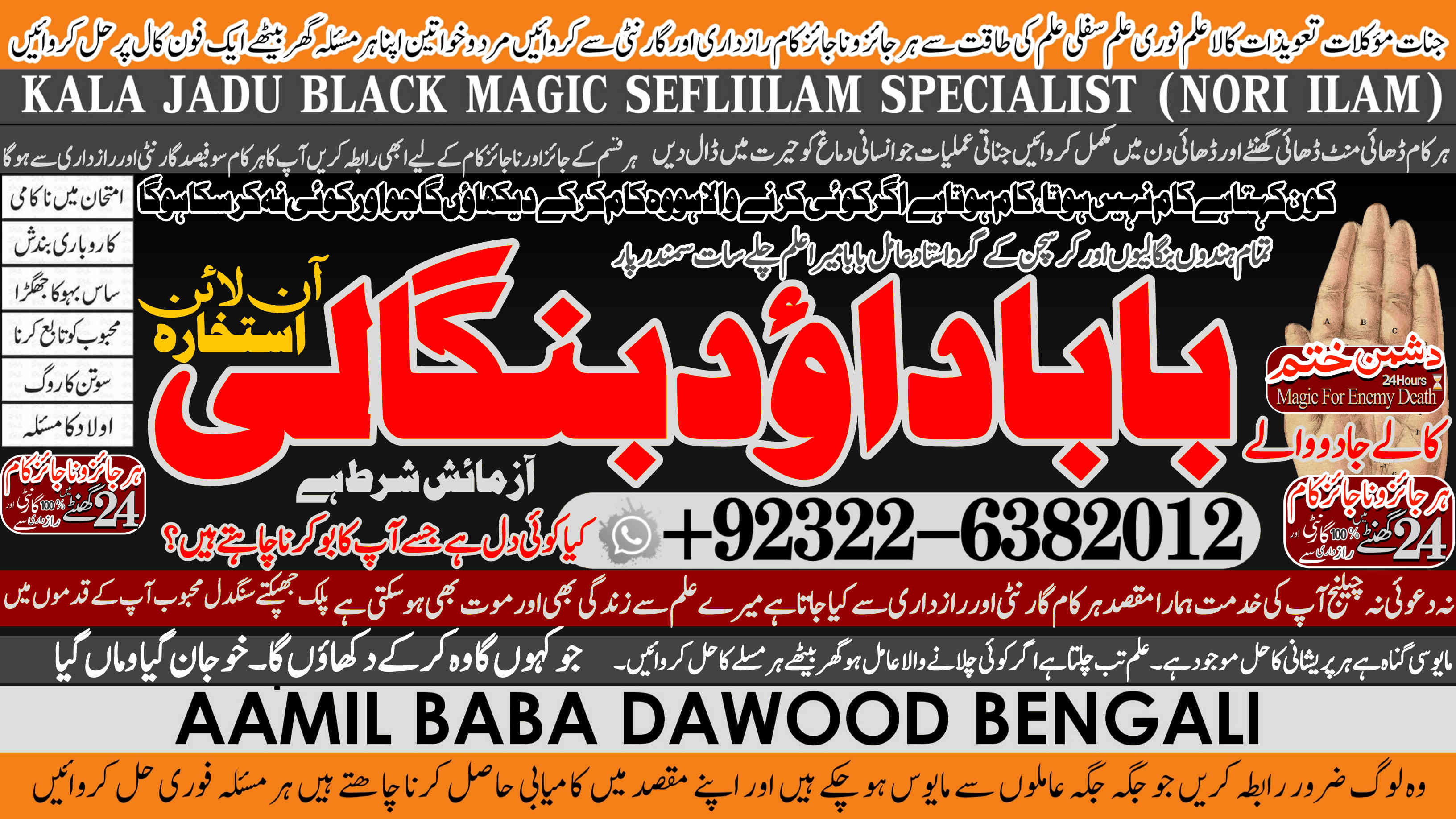 Amil Baba Dawood Bangali { PAK: 0322-6382012 ---- UAN: 0092-322-6382012} is a renowned spiritual healer and master of ancient occult sciences, specializing in Black Magic, Sephi Ilam, Nori Ilam, and Voodoo Spells. With decades of experience in the mystical arts, he has gained a reputation as a powerful and trusted guide for those seeking solutions to life's most challenging problems.